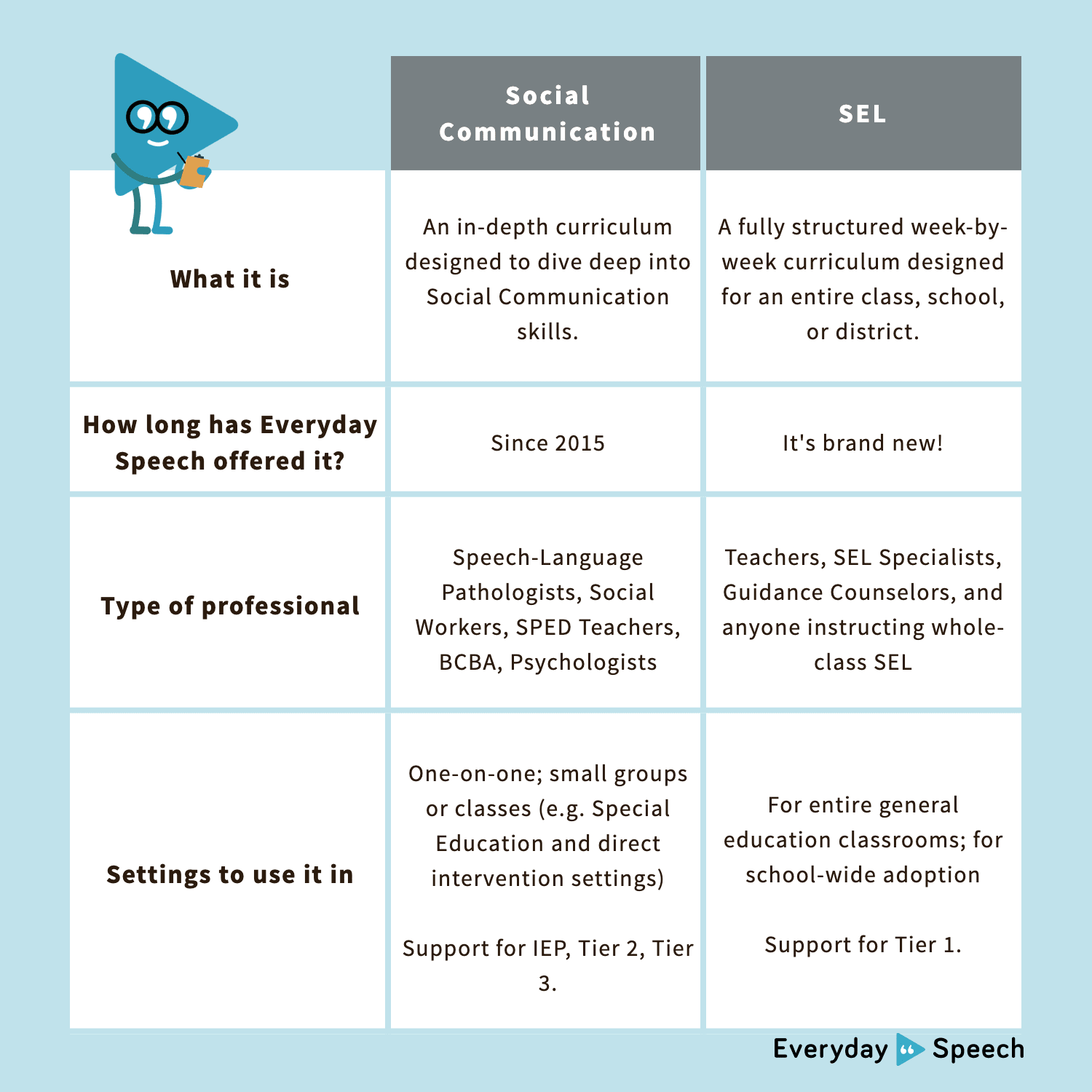 Sign up hereDid you know there are two different Everyday Speech curriculum tracks? We offer a Social Communication Curriculum and a Social-Emotional Learning (SEL) Curriculum.