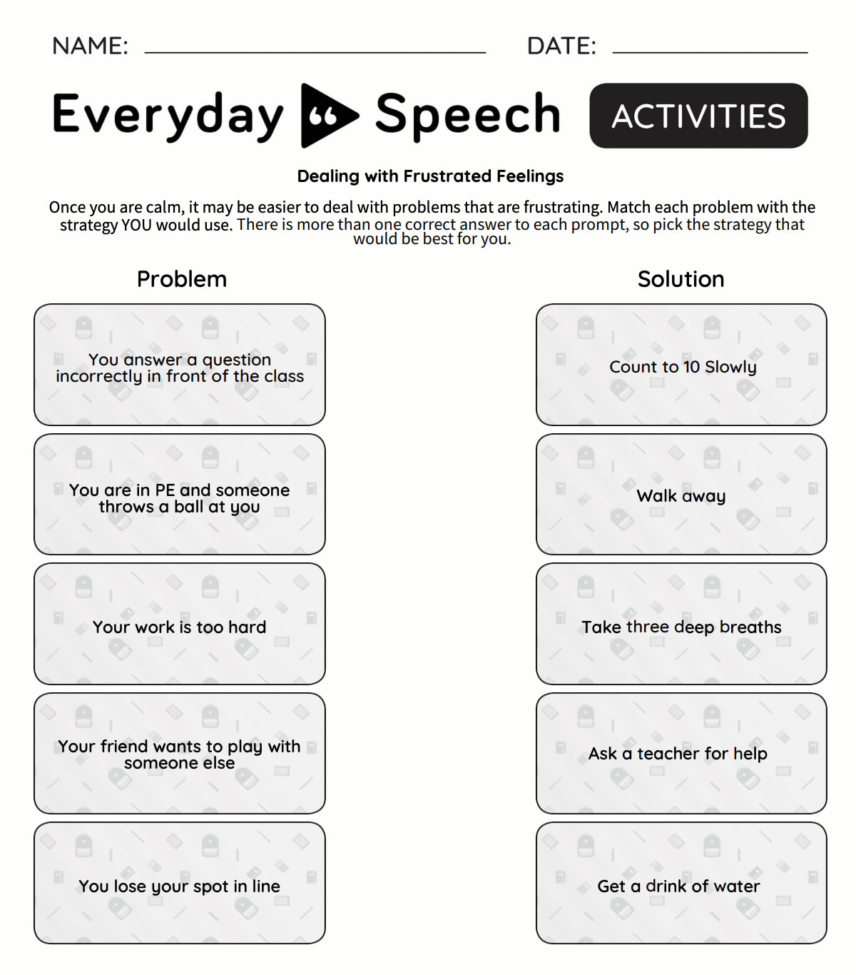 Remember, the ‘Elementary feeling frustrated activity’ is flexible. Feel free to adapt and modify it to better suit your students’ individual needs and personalities.