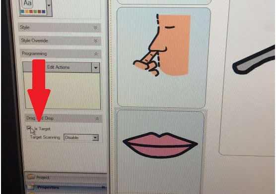 - Now under Drag and Drop check the box that says Is Target (see image below)
