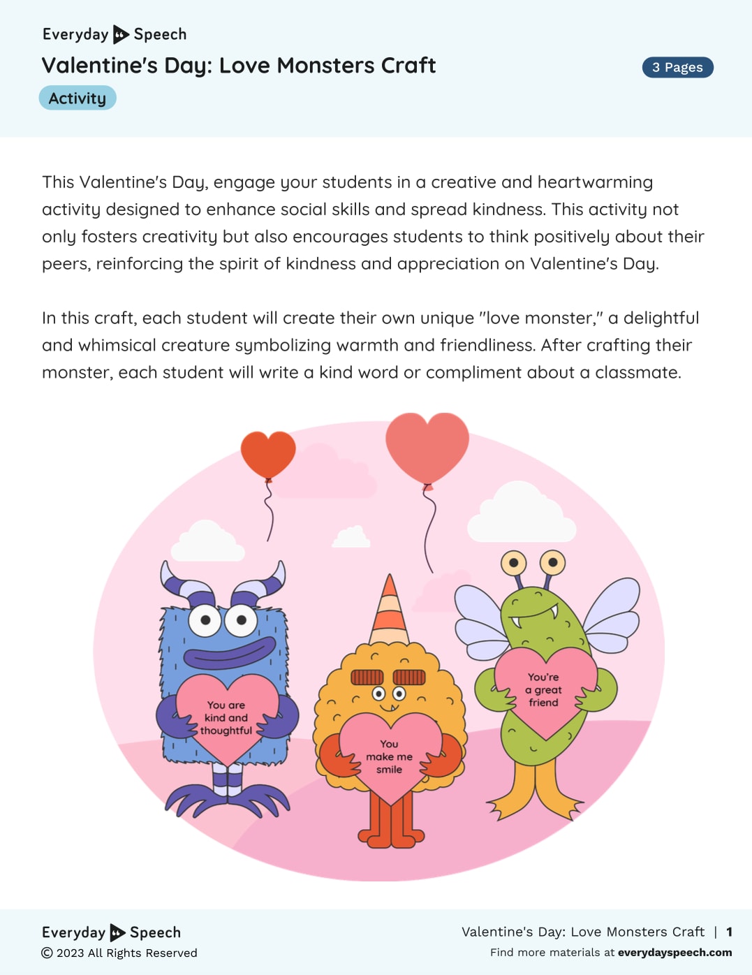Sign up hereValentine’s Day isn’t just about candy and cards; it’s a perfect opportunity to reinforce social skills like kindness and empathy in the classroom. This year, make Valentine’s Day memorable and meaningful with our Free Elementary Valentine’s Day Social Skills Craft featuring the Love Monsters. This engaging activity is a way to encourage students to express appreciation and spread kindness through sharing compliments. This blog post outlines a simple, no-prep lesson plan that includes a free downloadable PDF craft aimed at elementary teachers looking to foster a culture of kindness in their classrooms.