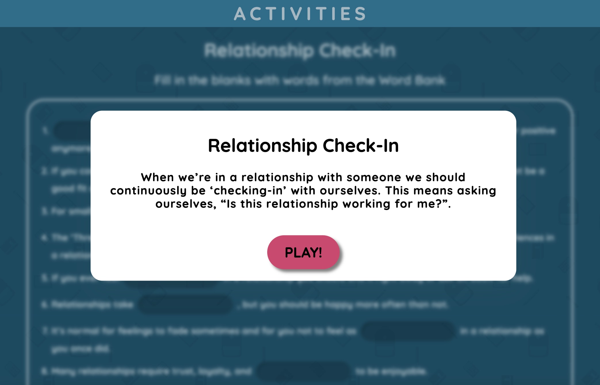 - Access the Interactive Check-In for Healthy, High School Dating activity on the platform.