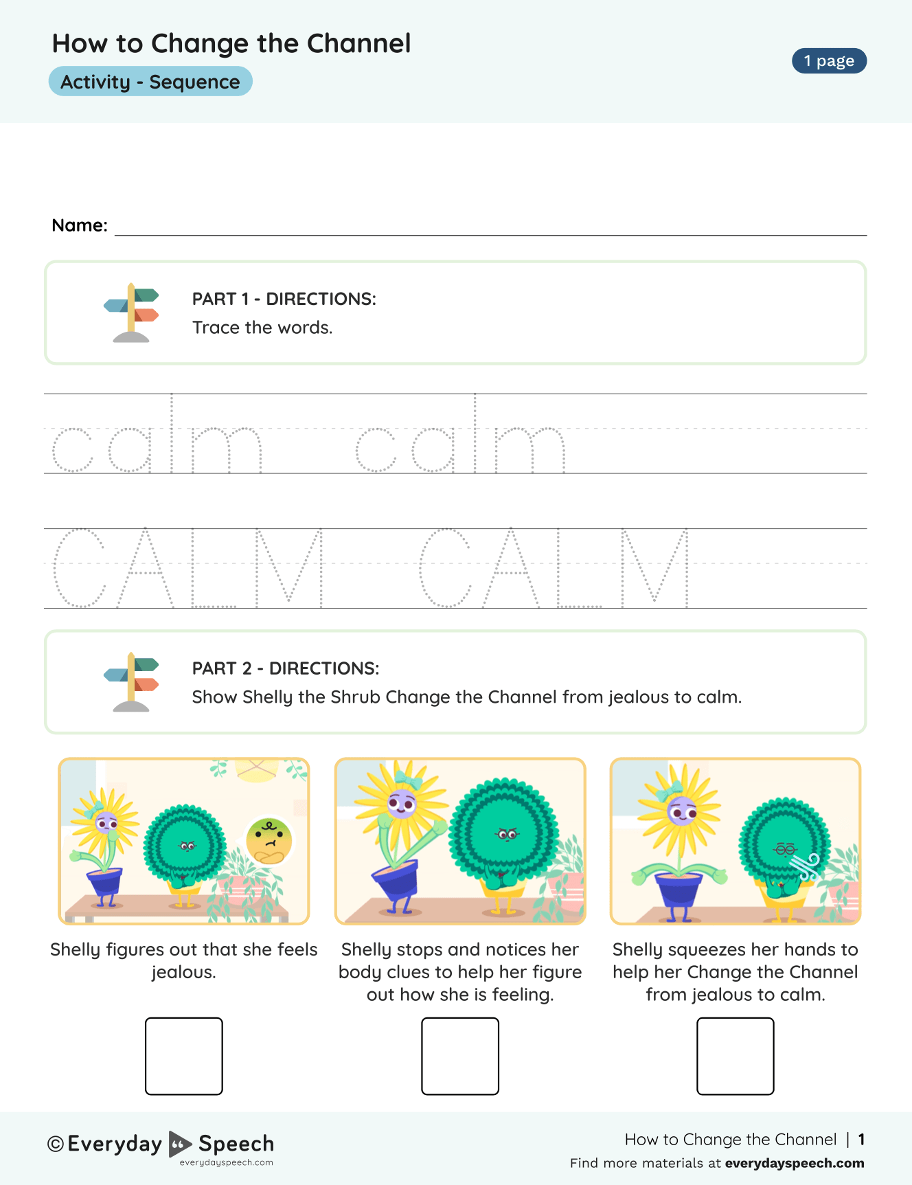 Sign up hereAs a preschool teacher, you know the importance of helping children understand and manage their emotions. Young learners can experience a range of feelings, and teaching them to ‘change the channel’ on their big feelings is a vital skill. In this blog post, we introduce an interactive lesson plan featuring a Preschool Change the Channel worksheet with tracing practice and a three-picture sorting activity featuring Everyday Speech plant characters, Shelly and Sunny.