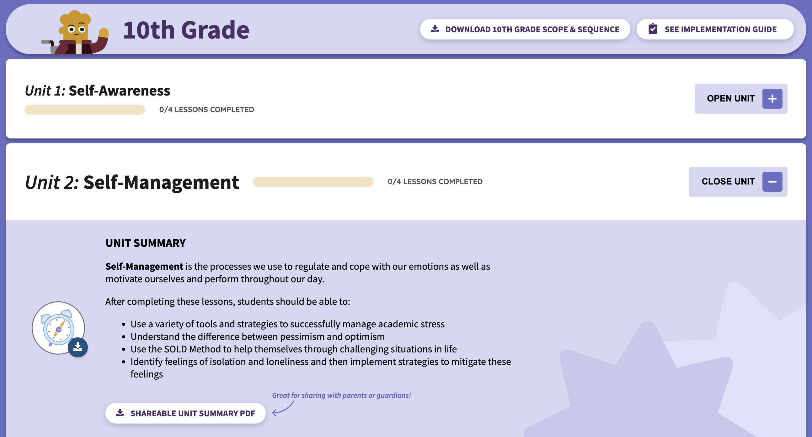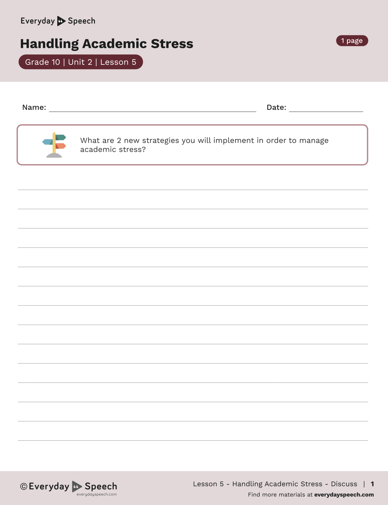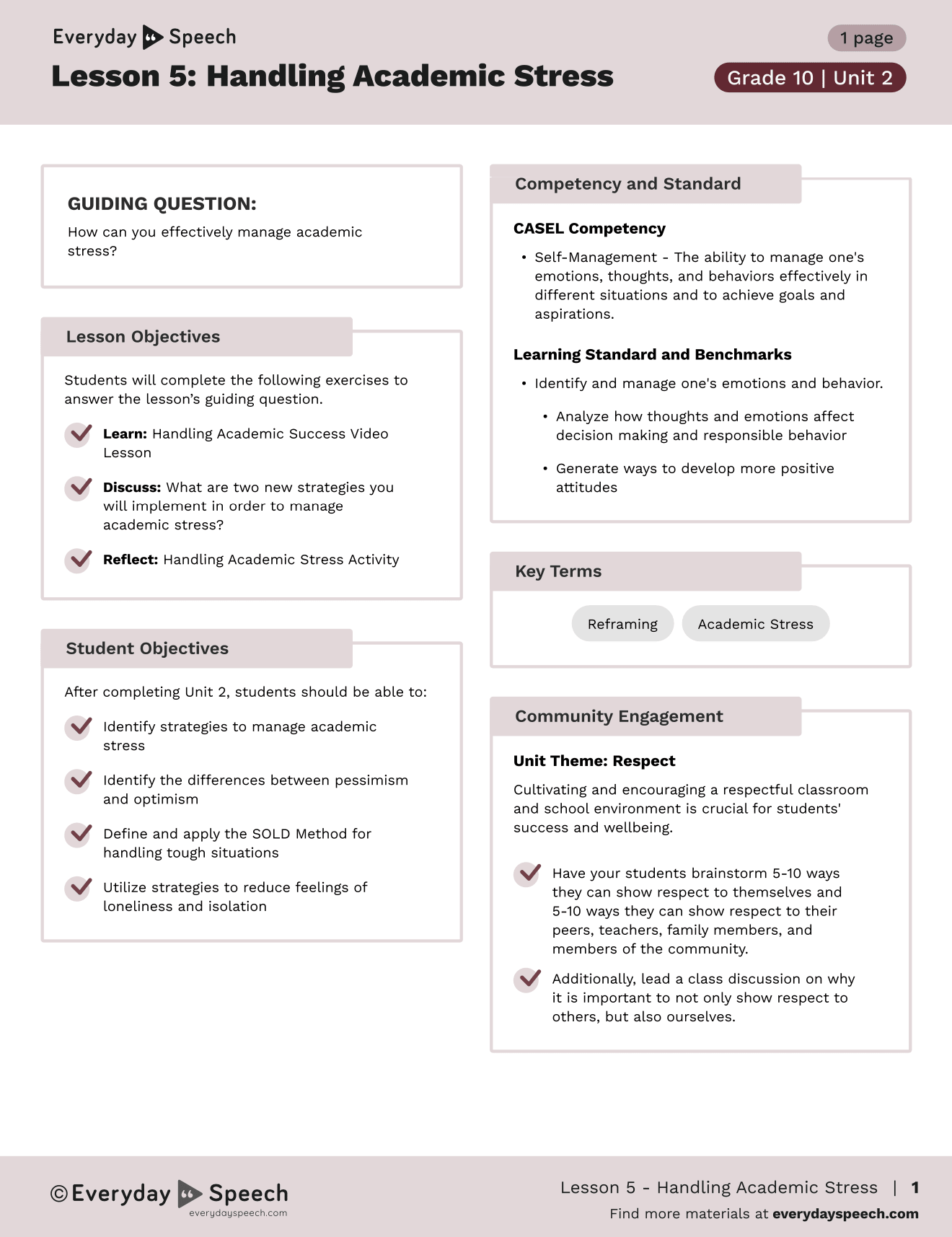 Today, we’re going to walk through one of our lessons for 10th Grade, Handling Academic Stress.