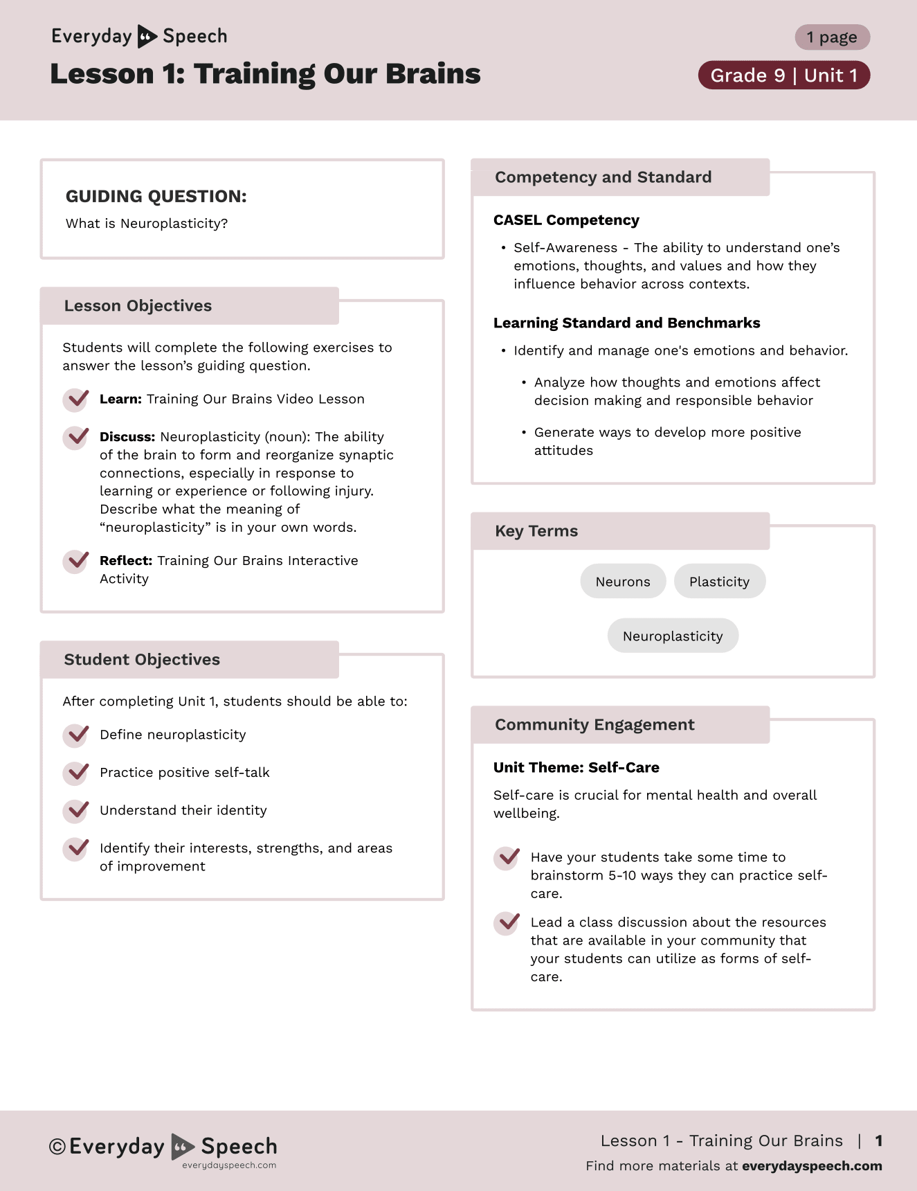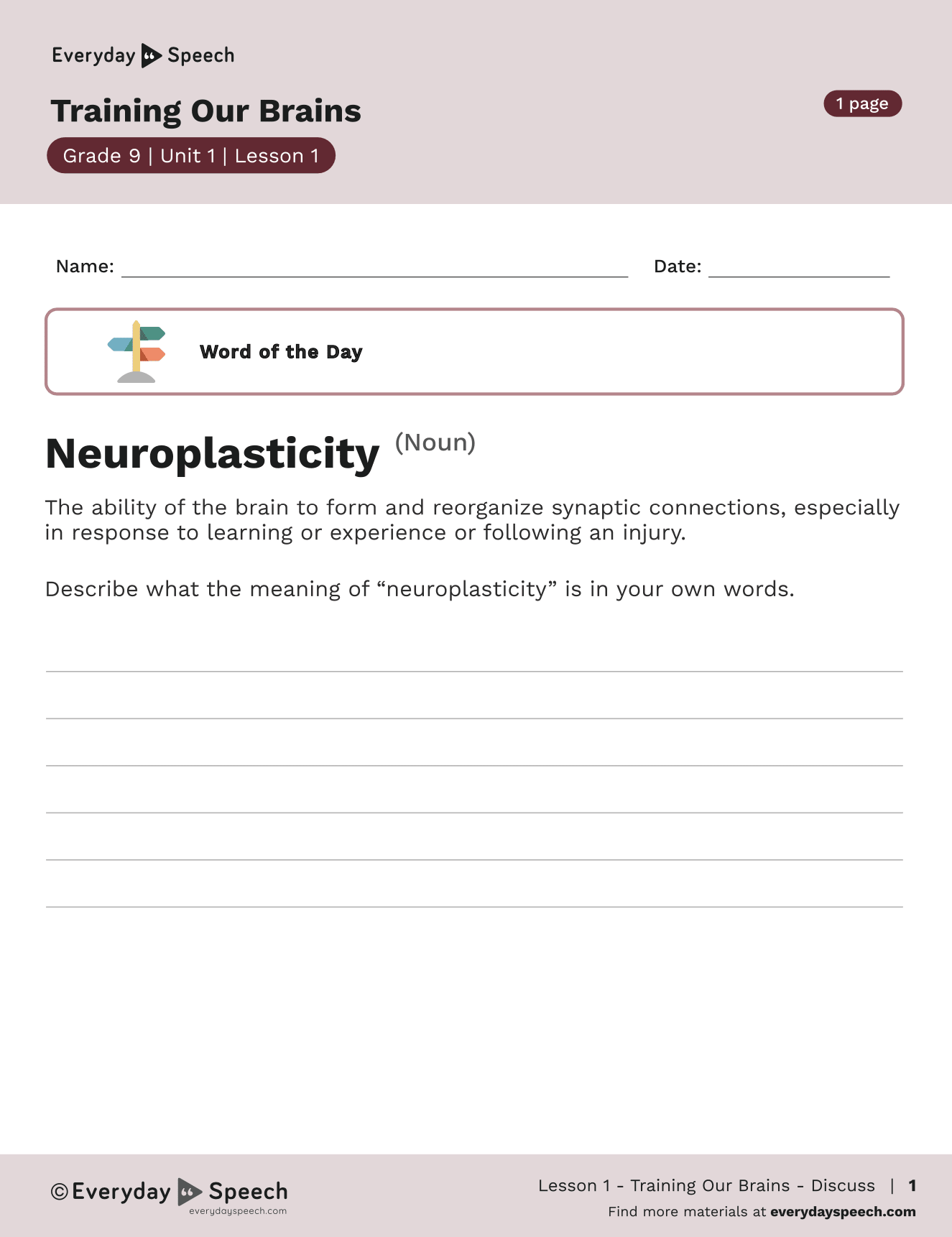 Today, we’re going to walk through one of our lessons for 9th Grade, Training Our Brains.