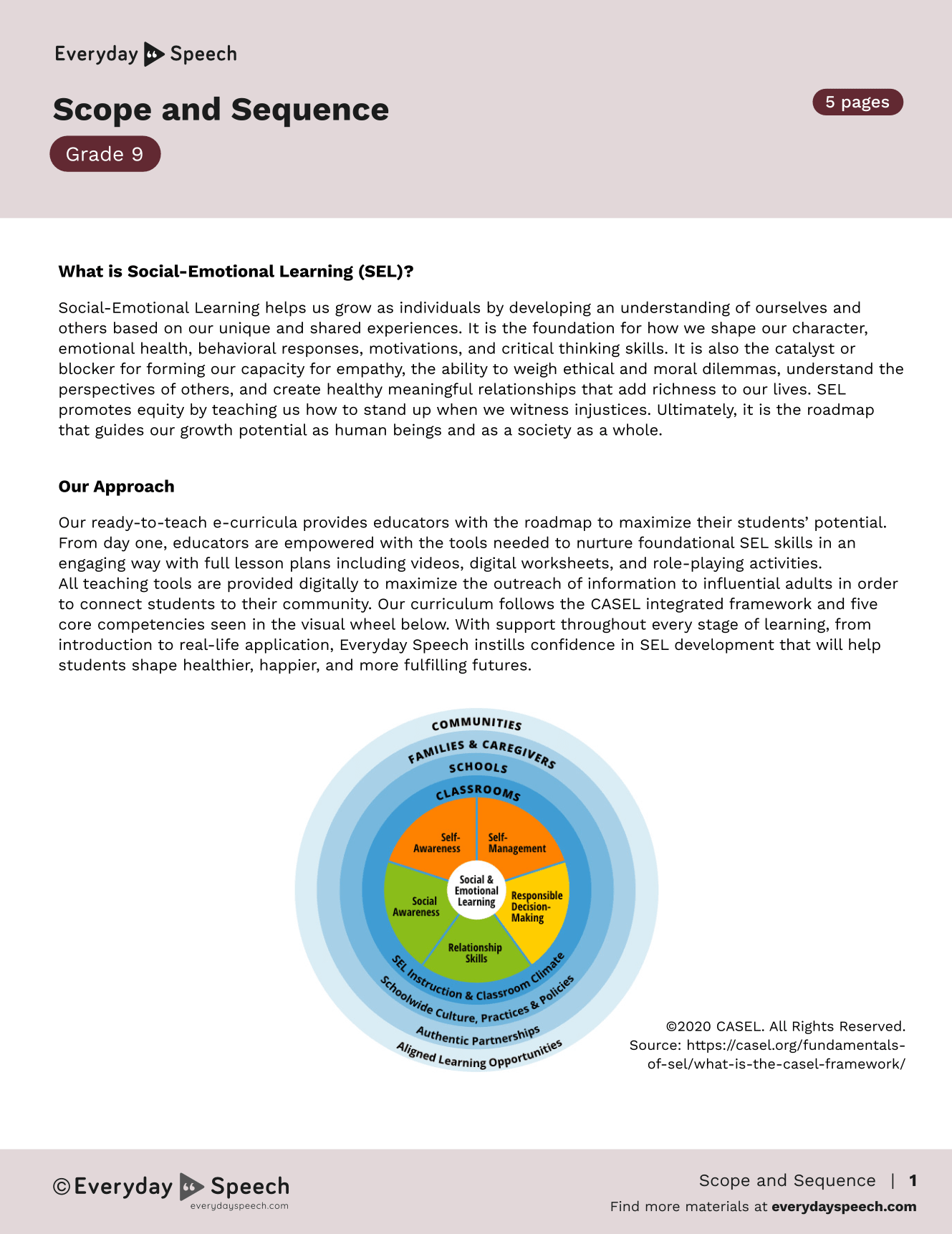 Social-Emotional Learning (SEL) is integral to educational and human development and ultimately contributes to safe & healthy individuals and communities. Here at Everyday Speech, it is our job to help you make a difference through easy, effective & fun SEL lessons for all students!